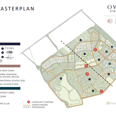 O West by Orascom Development is a fully integrated town in the heart of 6th of October. Spanning over 1,000 Feddans, this master-planned community dedicates vast space to nature and social infrastructure , including a major educational hub and West Cairo's largest sports and social club (38 Feddans).