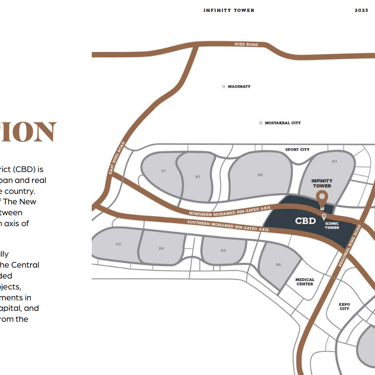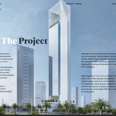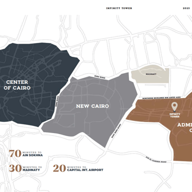 A landmark 200-meter office tower in the heart of the New Administrative Capital's Central Business District. Developed by Infinity Towers for Urban Development , this Class-A building features state-of-the-art, column-less office spaces and is a platinum LEED-certified project.